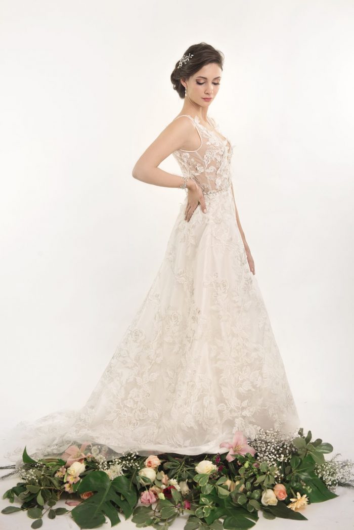 Vestido de novia encaje chantilly transparente. Diseño Gianna