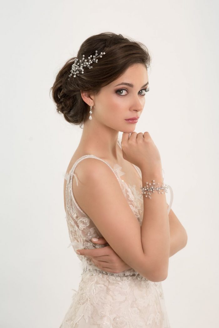 Detalle vestido novia Lenna en transparencias y bordado de cristales